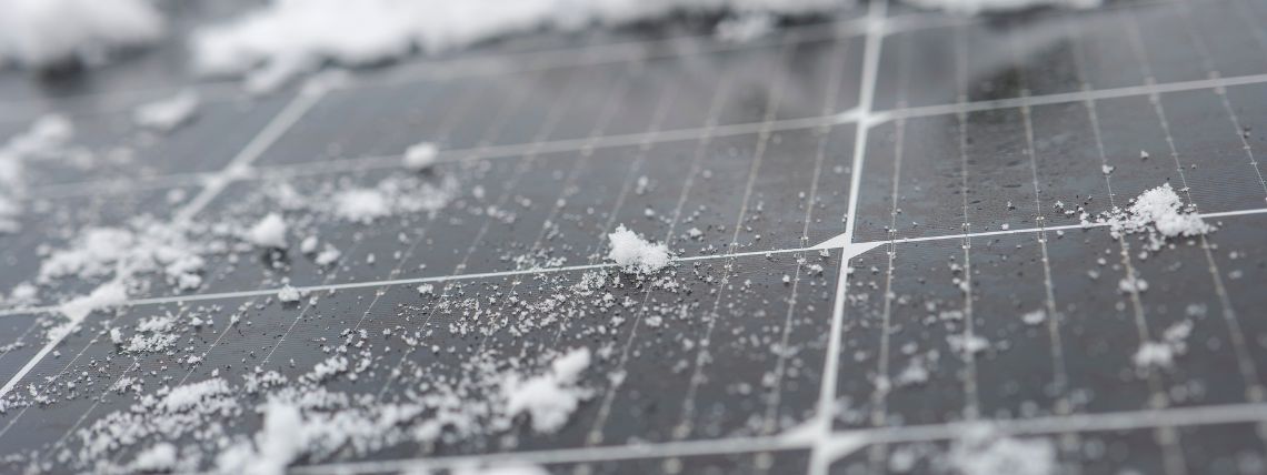 Většina fotovoltaických instalací je navržena s nakloněním panelů pod úhlem 30 až 45 stupňů. Tato konstrukce umožňuje sněhové pokrývce sklouznout pryč z panelů díky gravitaci, aniž by bylo nutné zasahovat. Výzkum provedený na zařízeních v Německu potvrzuje, že sněhová pokrývka má pouze minimální vliv na účinnost fotovoltaických systémů. Podle studie sníh snižuje účinnost pouze o 0,3 – 2,7 %. Tato ztráta výkonu je zanedbatelná ve srovnání s potenciálními riziky spojenými s ručním odstraňováním sněhu, jako jsou možná poškození panelů nebo zranění při pokusu o odstranění sněhu z kluzkých střech.