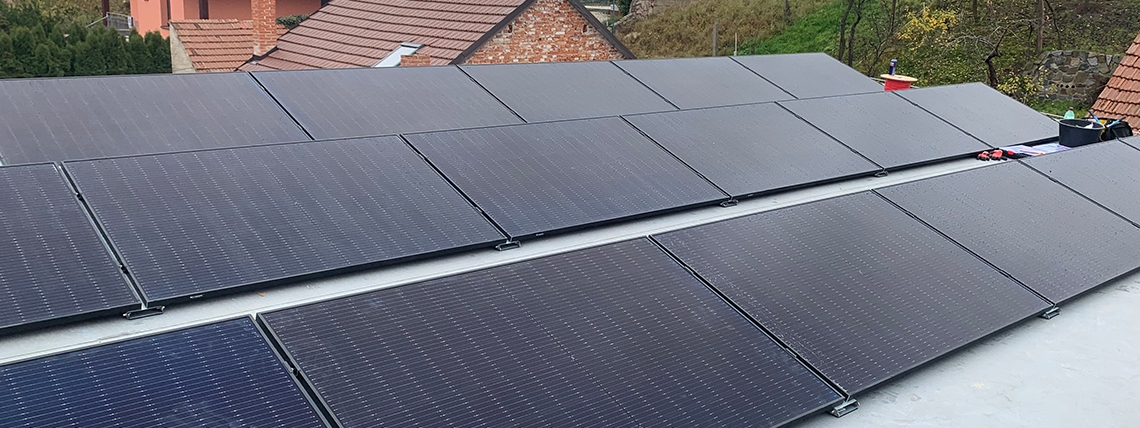 Ve spolupráci s klientem jsme se rozhodli pro instalaci celočerných panelů Longi o výkonu 405 W, které jsme umístili na plochou střechu domu se samozátěžovým systémem. Pro řízení systému jsme zvolili technologii SOLAX a integrovali jsme také bateriové úložiště o celkové kapacitě 10 kWh. Toto komplexní řešení umožňuje klientovi efektivně snižovat spotřebu elektřiny a využívat čistou energii ze slunce.